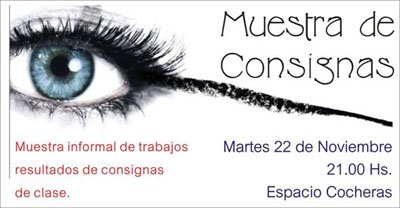 Esta muestra, de carácter más íntimo que las de Cierre de Año, proponen mostrar un poco lo que es «la cocina» a partir de la cual surgen luego propuestas más elaboradas destinadas a la gente que está interesada en conocer el trabajo regular de clase. Con un tono informal y ameno, los alumnos participantes también contarán sus experiencias.