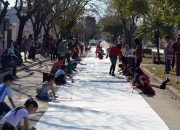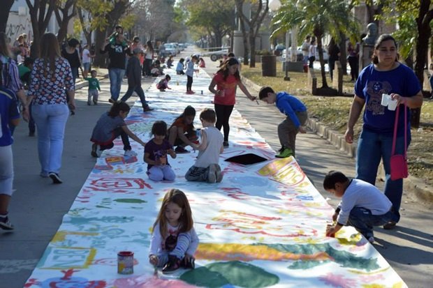 Con la organización del Municipio local, el domingo en horas de la tarde se desarrollaron diferentes actividades en la Plaza Libertad para homenajear a los más pequeños, en el marco del Día del Niño. Fue así como se pudo disfrutar de una propuesta cultural con la realización de pinturas en extensos papeles de decenas de metros que se desplegaron a lo largo de avenida Belgrano.