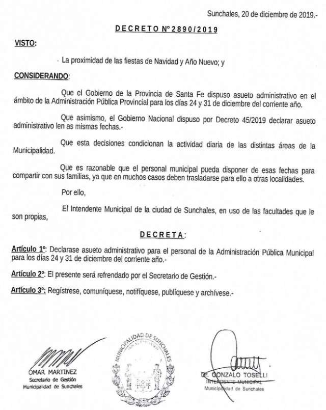 El Municipio decretó asueto para los días 24 y 31 de diciembre