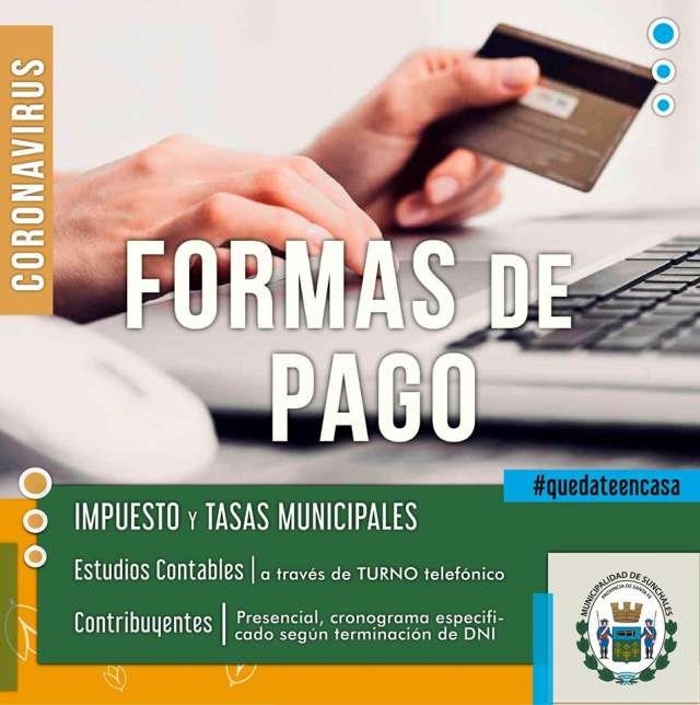 En la jornada de hoy, el Municipio difundió un nuevo esquema para el pago de Tasas generales municipales, contribuciones e impuestos (no servicios). El mismo, está dividido en personas físicas y jurídicas o estudios contables.
