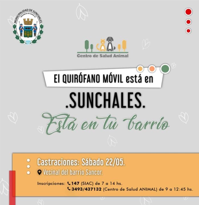 En la continuidad de la presencia que viene teniendo en los distintos barrios de la ciudad, el Quirófano Móvil desembarcará el próximo sábado 22 en la sede vecinal del barrio SanCor.