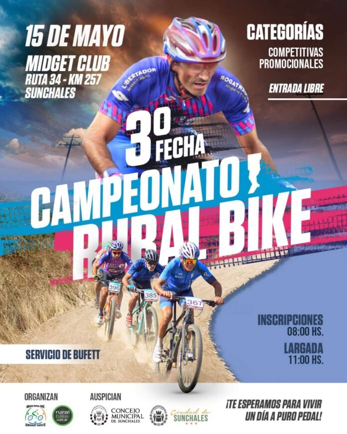 Con la organización de los ciclistas locales nucleados en los «Amigos del Rural Bike», este domingo Sunchales será sede de la nueva instancia del Campeonato Santafesino de Rural Bike 2022, disputándose la Tercera Fecha de su campeonato.