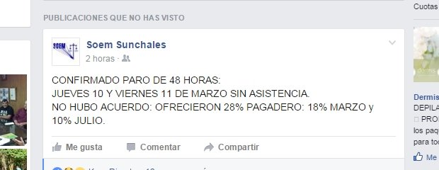 Después de la oferta efectuada en el marco de la Paritaria de los Municipales, se advierte que habría tenido lugar un retroceso en cuanto a la oferta puesto que de 28,5% pasó a 28%. Esto hizo que no se llegara a ningún acuerdo por lo que fue ratificada la medida de fuerza que se extenderá por las próximas 48 horas.