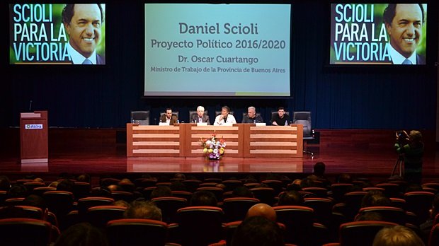 El actual ministro de Trabajo de la provincia de Buenos Aires estuvo en la ciudad en la mañana de hoy presentando los lineamientos generales de la propuesta que encabeza Daniel Scioli en la búsqueda de la Presidencia de la Nación. Ante un colmado Auditorio de Atilra se explayó sobre diferentes temas.