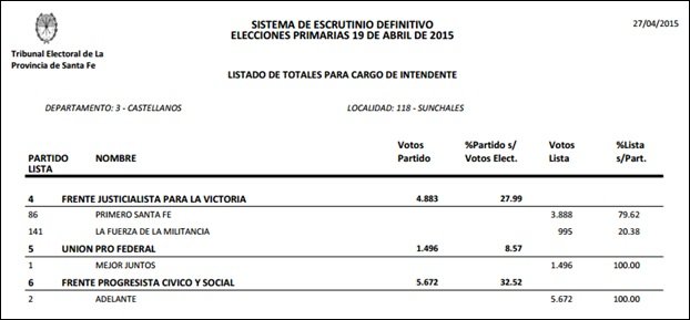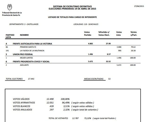 En el día de hoy, el Tribunal Electoral de la Provincia publicó los datos finales del escrutinio para aquellas localidades que ya pasaron por dicha instancia.