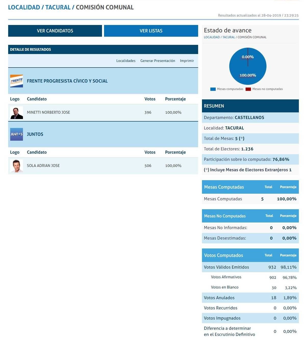En el mano a mano que protagonizan los dos últimos Presidentes Comunales de Tacural, el actual, Norberto Minetti, fue superado por su antecesor, Adrián Sola.