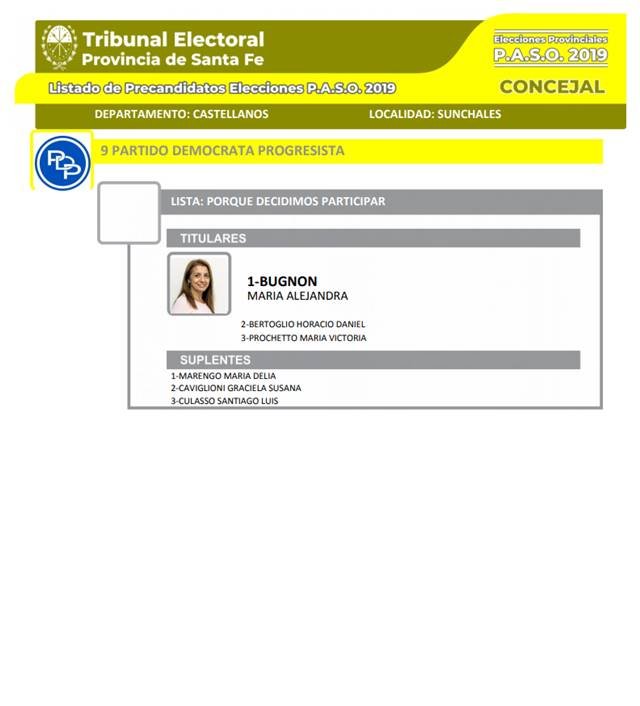De cara a las Primarias, Abiertas, Simultáneas y Obligatorias, el Tribunal Electoral de la Provincia oficializó las listas de candidatos de todo el territorio santafesino. En lo que respecta a nuestra ciudad, no se registraron variantes acerca de lo que había sido anticipado en las semanas previas.