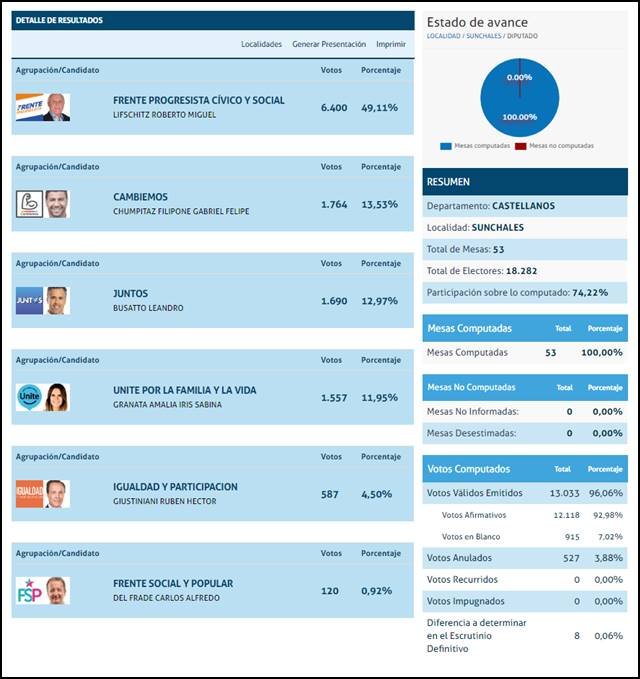 Elecciones 2019: Sunchales votó a Bonfatti, Lifschitz y Calvo