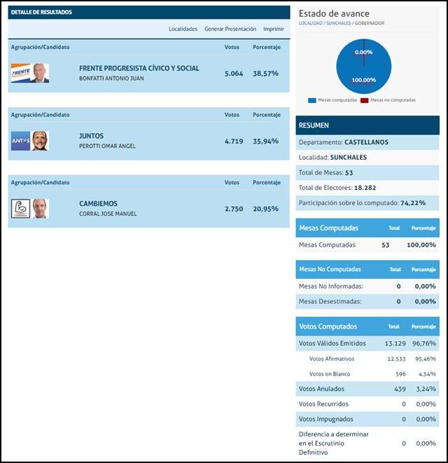 La prueba está en que los resultados de las fuerzas que se impusieron marcan: Pdp para Concejal, Gen/Frente Progresista para Intendente, PJ para Senador y Frente Progresista para Diputados y Gobernador.