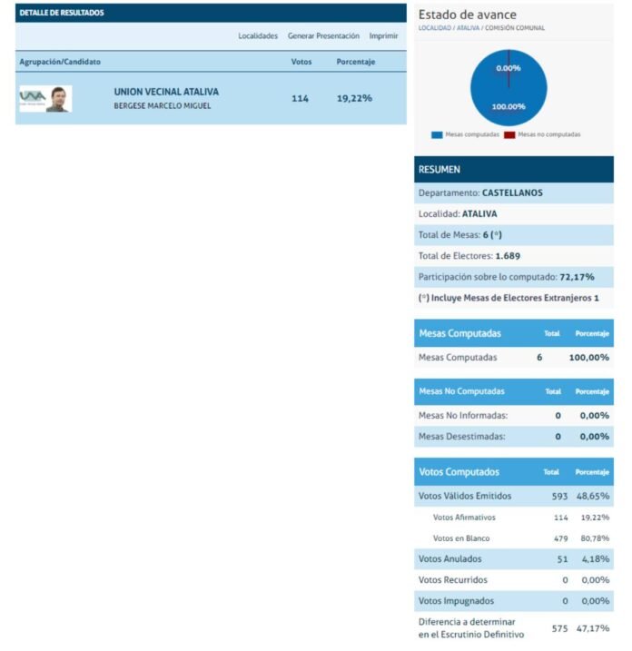 Elecciones 2021RegiónAtaliva Elecciones 2021: En Ataliva Bergese tendrá una nueva etapa como Presidente Comunal 15/11/2021 Por Redacción SH 80 Compartir FacebookTwitterWhatsAppEmail Luego de conocidos los resultados del Escrutinio Provisorio, si bien Marcelo Bergese continuará al frente de la Comuna, tendrá una compleja tarea por delante, toda vez que cosechó solamente 114 votos, siendo los votos en blanco 479. TemasatalivaElecciones 2021Marcelo Bergese Compartir FacebookTwitterWhatsAppEmail Relacionadas Ataliva y los 125 años de su escuela 18/09/2025 Ataliva y sus 125 años 16/09/2025 Ataliva y sus festejos Patronales 13/08/2025 Ultimas noticias Copa Departamento: Mañana se juega la revancha del clásico local 11/02/2026 Eempa: Inscripciones abiertas 10/02/2026 La «Mochila de Brochero» encara una nueva campaña de mochilas y zapatillas 10/02/2026