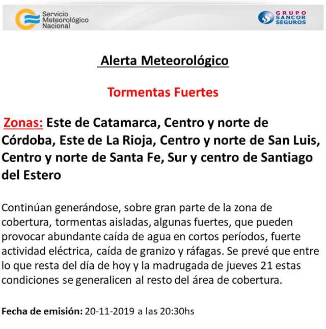 Pronóstico Emiten Alerta Meteorológico 20/11/2019 Por Redacción SH 390 Compartir FacebookXWhatsAppEmail La Estación Meteorológica que funciona en el Aeródromo de nuestra ciudad, emitió un Alerta ante la probable ocurrencia de tormentas fuertes que pudieran tener lugar en horas de la madrugada de hoy. Temaspronósticoservicio meteorológico nacionalSMN Compartir FacebookXWhatsAppEmail Relacionadas SAT: Alerta Naranja para las próximas horas 14/04/2026 SAT: Alerta Naranja para casi todo el lunes 05/04/2026 SAT: Alerta por lluvias para el martes 15/03/2026 Ultimas noticias Ruta Nº 34: Anticipan trabajos en los desvíos entre Sunchales y Ataliva 21/04/2026 LRF Senior – F2: Libertad volvió a ganar 21/04/2026 Acto por el Día del Idioma 21/04/2026