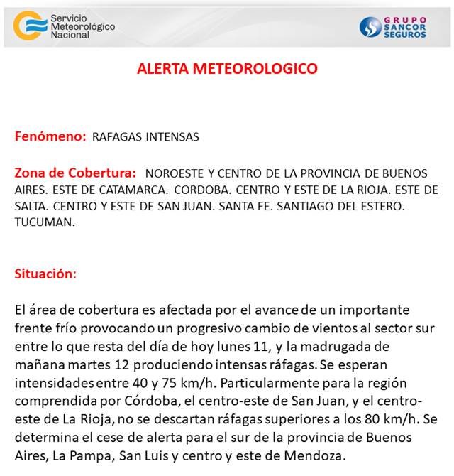 Pronóstico Emiten Alerta por vientos fuertes y ráfagas 11/02/2019 Por Redacción SH 247 Compartir FacebookXWhatsAppEmail Así lo anticipó la oficina local del Servicio Meteorológico Nacional, desde donde señalaron que en la madrugada pueden registrarse ráfagas de viento intensas en toda la región. Temasalerta meteorológicoSMN Compartir FacebookXWhatsAppEmail Relacionadas SAT: Alerta Naranja para las próximas horas 14/04/2026 SAT: Alerta Naranja para casi todo el lunes 05/04/2026 SAT: Anticipan tormentas para la tarde de hoy 08/03/2026 Ultimas noticias Aquellas vacaciones en el pueblo 19/04/2026 A 65 años del nacimiento de Hugo Bertoldi 18/04/2026 AMB: Libertad volvió a ganar y sigue bien arriba 18/04/2026