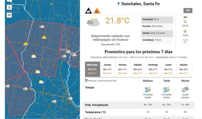 El aviso, emitido por parte del Servicio Meteorológico Nacional, anticipa la probable ocurrencia de tormentas fuertes en localidades de nuestro Departamento Castellanos. Anoche, la Estación local elevó el Alerta Temprano de Amarillo a Naranja, anticipando esta situación.