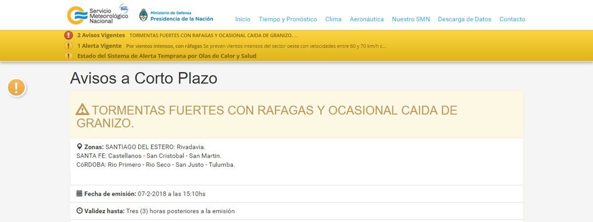 Pronóstico Emiten un Alerta Meteorológico a corto plazo 07/02/2018 Por Redacción SH 943 Compartir FacebookXWhatsAppEmail TemasAlerta Meteorológicapronósticoservicio meteorológico nacional Compartir FacebookXWhatsAppEmail Relacionadas SAT: Alerta por lluvias para el martes 15/03/2026 SAT: Anticipan tormentas para la tarde de hoy 08/03/2026 SAT: Alerta Amarillo por tormentas para el martes 01/03/2026 Ultimas noticias LRF – F3: Libertad juega mañana al mediodía 28/03/2026 ARB F – F3: Unión frenó a San Lorenzo 28/03/2026 ARB F – F3: Ajustada derrota de Libertad 28/03/2026