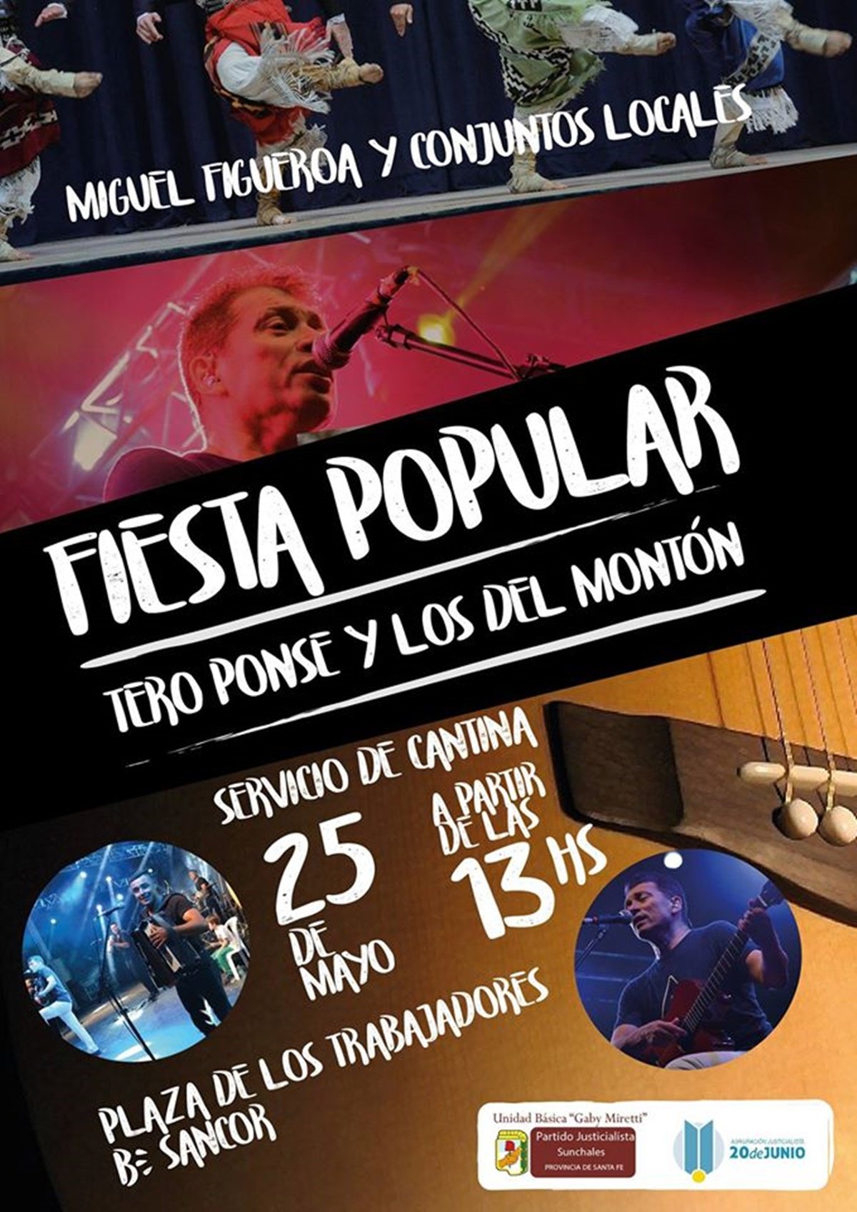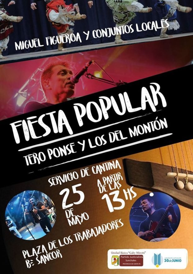 Con la organización de la Unidad Básica «Gaby Miretti» y la agrupación «20 de Junio», este jueves se desarrollarán diferentes presentaciones musicales en el barrio SanCor. Los mismos, de carácter libre y gratuito, estarán enmarcados en el festejo por el 25 de Mayo.