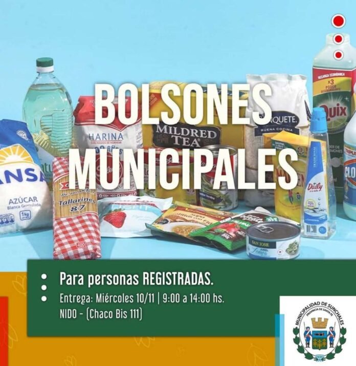 La Municipalidad comunica a los beneficiarios de los bolsones alimentarios que la entrega correspondiente al mes de noviembre, se realizará el miércoles 10 de 9 a 14 horas en el Núcleo de Innovación y Desarrollo de Oportunidades «Oscar Girard», ubicado en Chaco Bis 111.