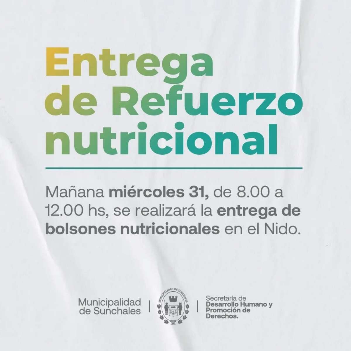Interés general Entregan refuerzo nutricional 30/01/2024 Por Redacción SH 11 Compartir FacebookTwitterWhatsAppEmail El Municipio informó que mañana miércoles, en el Nido, en el horario de 8 a 13, se estará realizando la entrega de los bolsones nutricionales. TemasbolsonesMunicipalidadRefuerzo Nutricional Compartir FacebookTwitterWhatsAppEmail Relacionadas El Municipio incorporó 64 nuevas columnas para alumbrado público 29/01/2026 Suspendieron el paro de Municipales 28/01/2026 Jardín del Soem: Una historia lejos de terminar 23/01/2026 Ultimas noticias La campaña de Aftosa 2026 ya tiene cronograma 12/02/2026 LMB: Libertad debuta ante el 9 de Morteros 11/02/2026 Copa Departamento: Mañana se juega la revancha del clásico local 11/02/2026