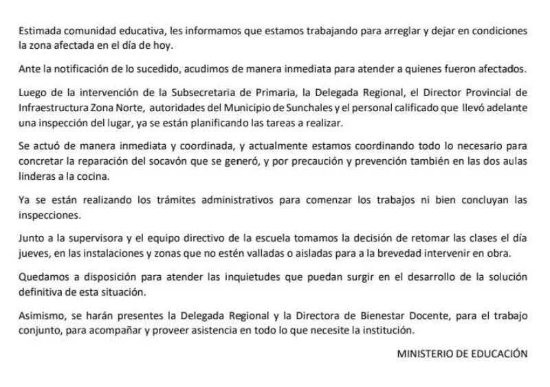 Se debe a una decisión tomada por las autoridades del Ministerio de Educación que se hicieron presentes en horas de la siesta para evaluar la situación y analizar los pasos a seguir. En el comunicado difundido, se menciona la necesidad de realizar una inspección y tener precaución en otras dos aulas.