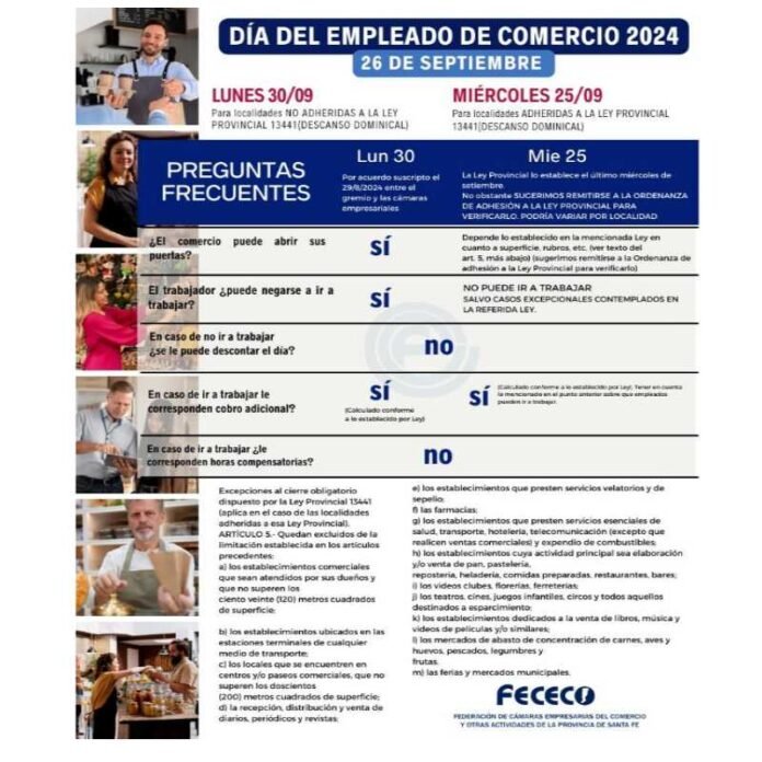 Interés general Fececo y el Día del Empleado de Comercio 27/09/2024 Por Redacción SH 24 Compartir FacebookTwitterWhatsAppEmail Desde el Centro Comercial, compartieron un cuadro informativo que fue elaborado por Fececo y que refiere a lo que en nuestra ciudad, ocurrirá el lunes venidero, con la celebración del Día del Empleado de Comercio. TemasCentro Comercialdía del empleado de comerciofececo Compartir FacebookTwitterWhatsAppEmail Relacionadas A 80 años de la constitución del Centro Comercial 25/11/2025 Centro Comercial: Impagables facturas de la EPE 07/05/2025 Centro Comercial: César Alemani al frente del mismo 04/05/2025 Ultimas noticias Carnavales: Reprograman la segunda noche 15/02/2026 A 24 años de la creación del Taller «Alfa Centauro» 15/02/2026 A 11 años del ascenso de Unión al Federal A 15/02/2026