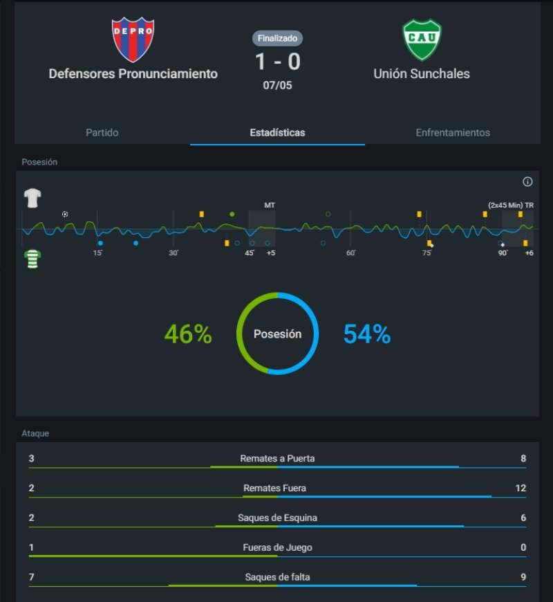 Las estadísticas muestran que Unión fue superior en varios aspectos a Deportivo Pronunciamiento: