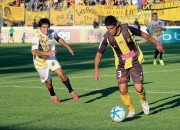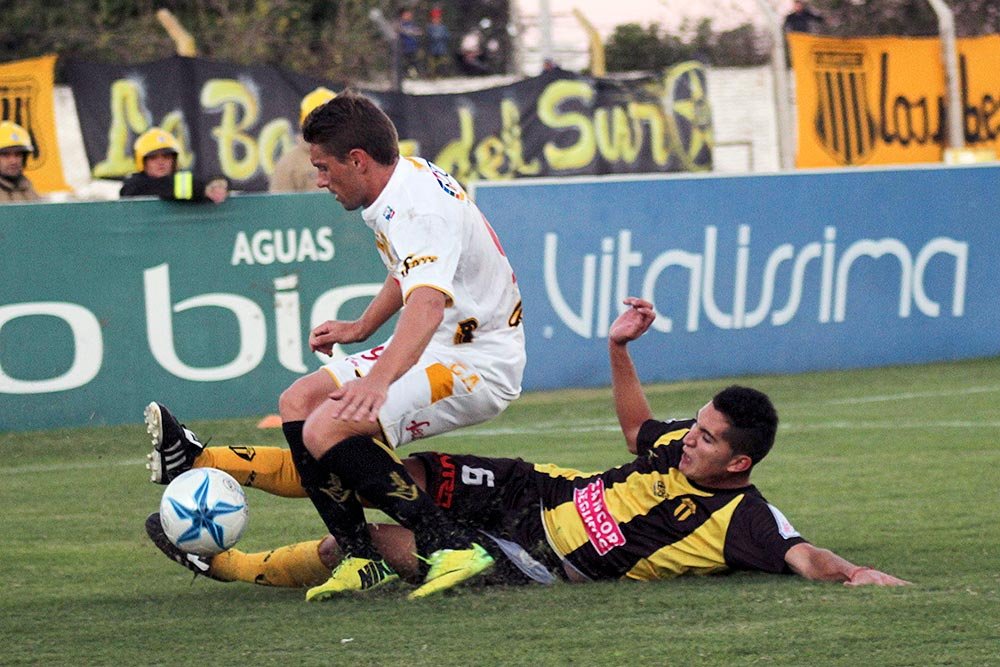El Aurinegro salió a tomar el protagonismo del juego y a los 17 logró ponerse en ventaja, con un verdadero golazo de Lucas Saucedo, quien definió de gran forma por encima de Mazón. De esta manera se desataba el delirio en el 8 de abril del pueblo aurinegro que ya presagiaba otro festejo en casa, donde pierde hace 414 días.