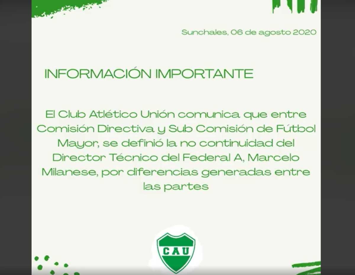 Con seguridad el comunicado oficial no refleja la relación entre las partes puesto que en su brevedad no agradece lo realizado ni reconoce mérito alguno; además, con una cuota de desprolijidad, circuló primero en otros grupos deportivos antes hacerlo en las cuentas oficiales.