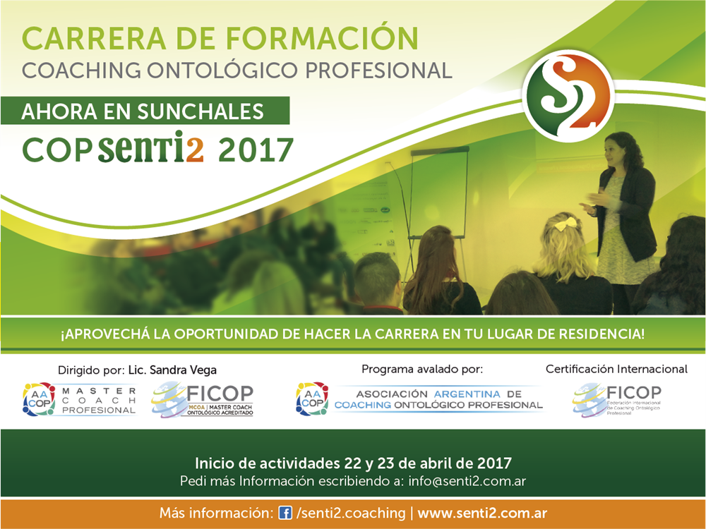 Formación de Coaching Profesional en Sunchales. Abiertas las inscripciones 2017. Para más información: info@senti2.com.ar