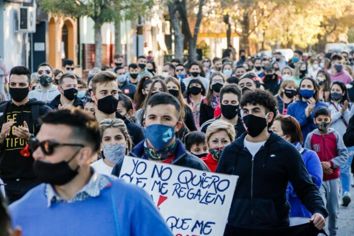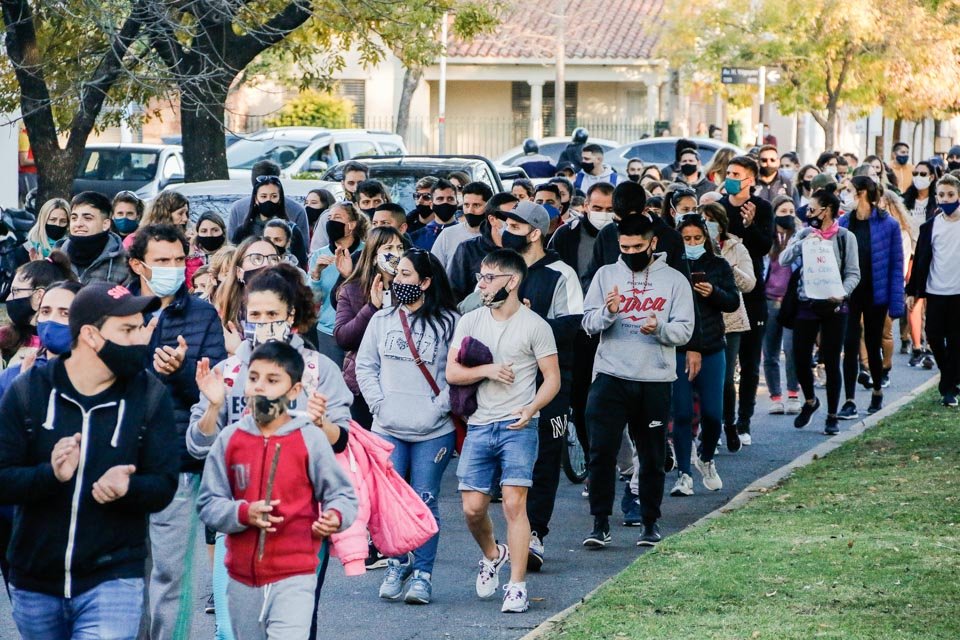 Con un contexto multitudinario, un par de cientos de sunchalenses recorrieron las calles céntricas para culminar en la Explanada Cívica, en donde mostraron pancartas y carteles cuyas consignas se mostraban claramente en contra de las recientes disposiciones provinciales que limitaron su funcionamiento.