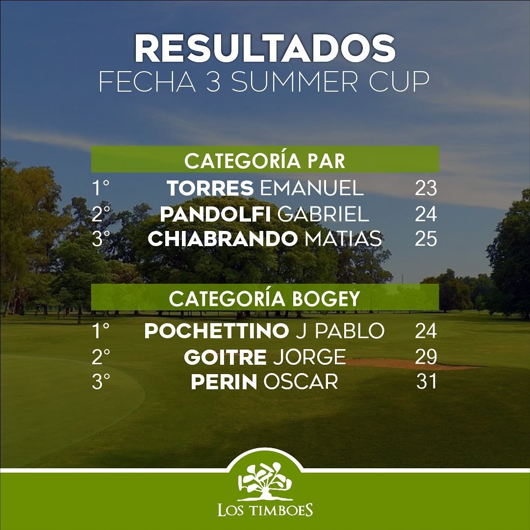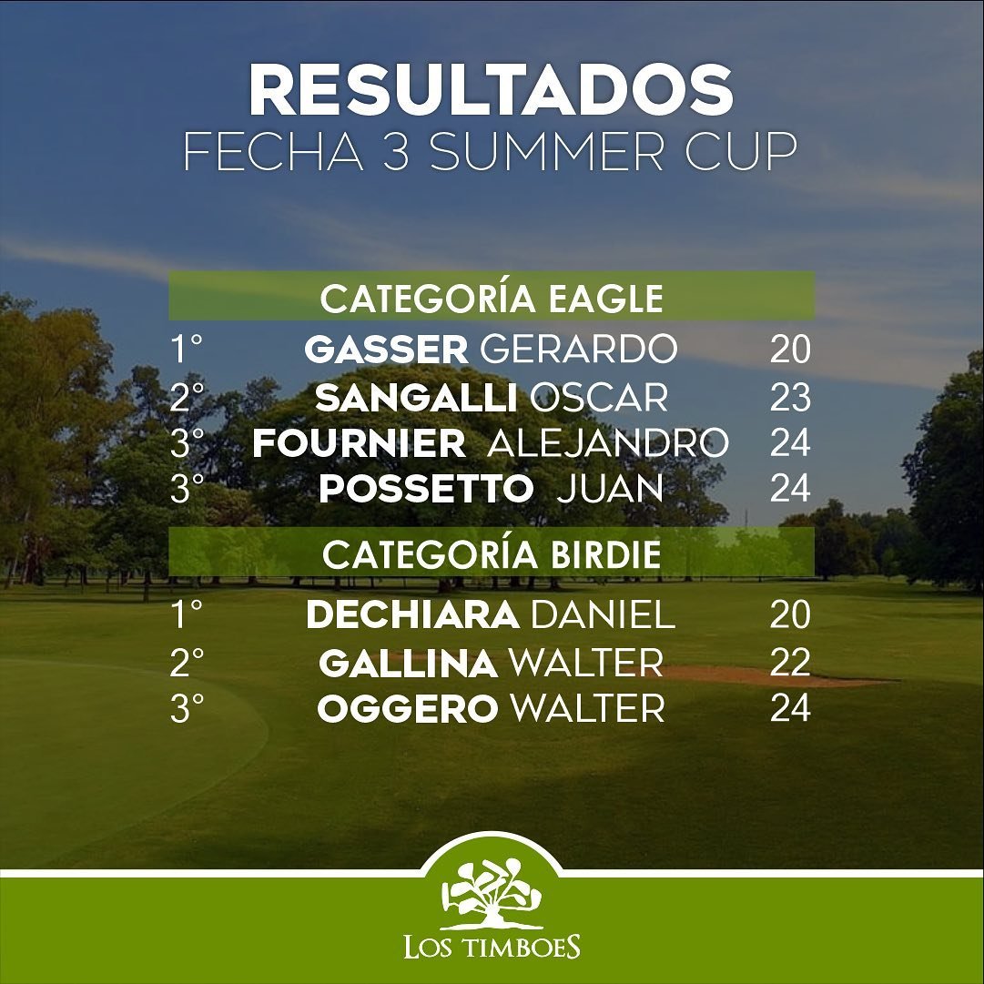 DeportesOtros deportes Golf: La Summer Cup ya tiene los ganadores de su Tercera Fecha 25/01/2023 Por Redacción SH 18 Compartir FacebookXWhatsAppEmail Desde el club de Golf «Los Timboes» informaron los resultados que se lograron el pasado fin de semana, en el marco de la disputa de la Tercera Fecha de la tradicional Copa de Verano que están organizando. 1 de 3 TemasgolfLos TimboesSummer Cup Compartir FacebookXWhatsAppEmail Relacionadas Golf: Los Timboes desarrolló un nuevo Torneo Interno 22/12/2025 Golf: Resultados del fin de semana en Los Timboes 17/12/2025 Golf: Los Timboes tuvo un nuevo Torneo Interno 09/12/2025 Ultimas noticias Jornada por la Democracia 19/03/2026 ARB F – F1: Las chicas de Unión arrancaron con un traspié 19/03/2026 A 70 años de Alpid 19/03/2026