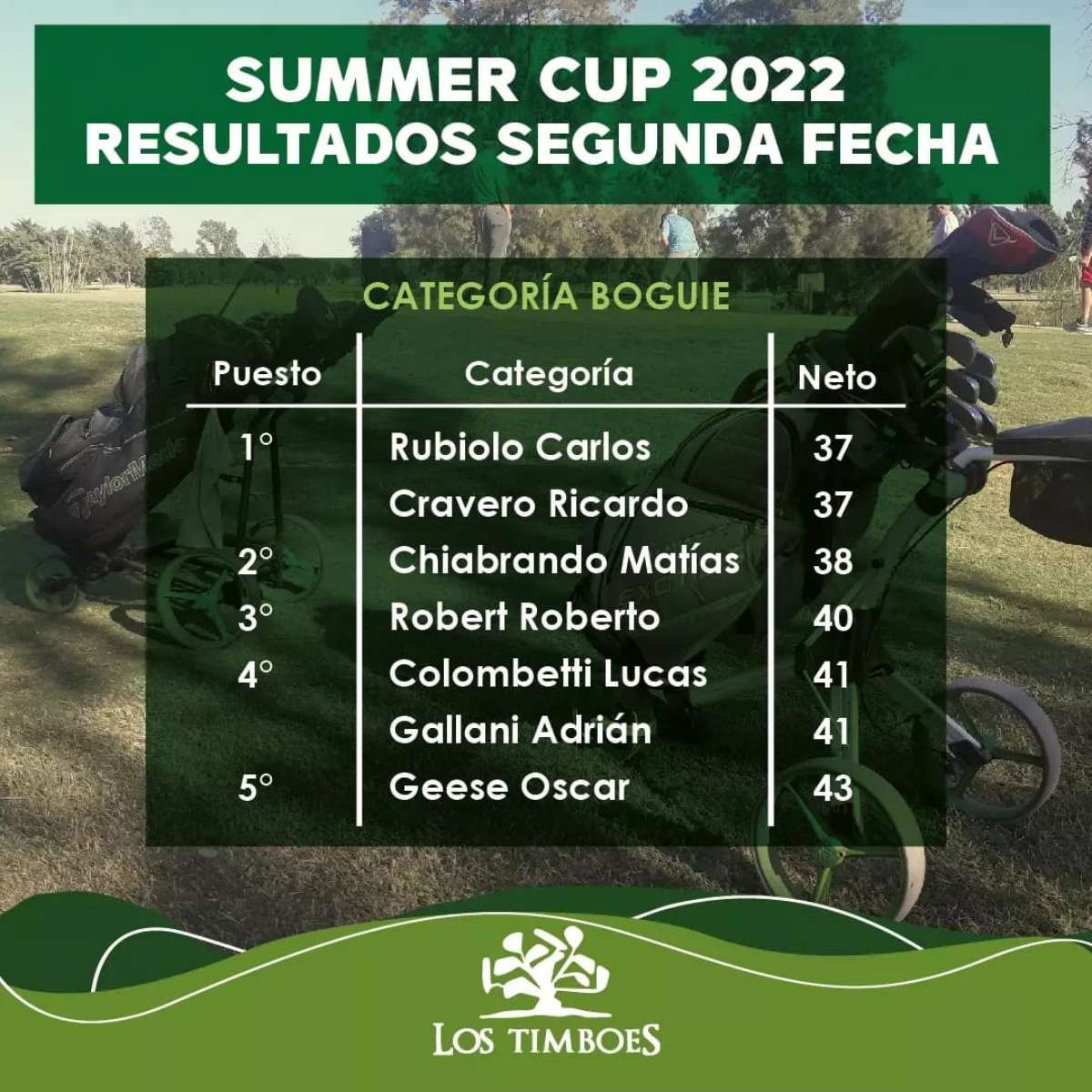 El club de Golf «Los Timboes» informó que este fin de semana se desarrollará la Tercera Fecha del ya tradicional certamen de verano que organiza y que se denomina «Summer Cup». El mismo, hasta ahora tiene una excelente respuesta de participación. Compartimos los resultados de la anterior Fecha.