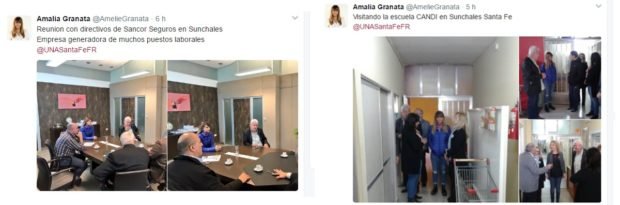 Entre los lugares que recorrió -de acuerdo a sus publicaciones en su perfil de Twitter– se encontraron el Grupo Sancor Seguros y Candi.