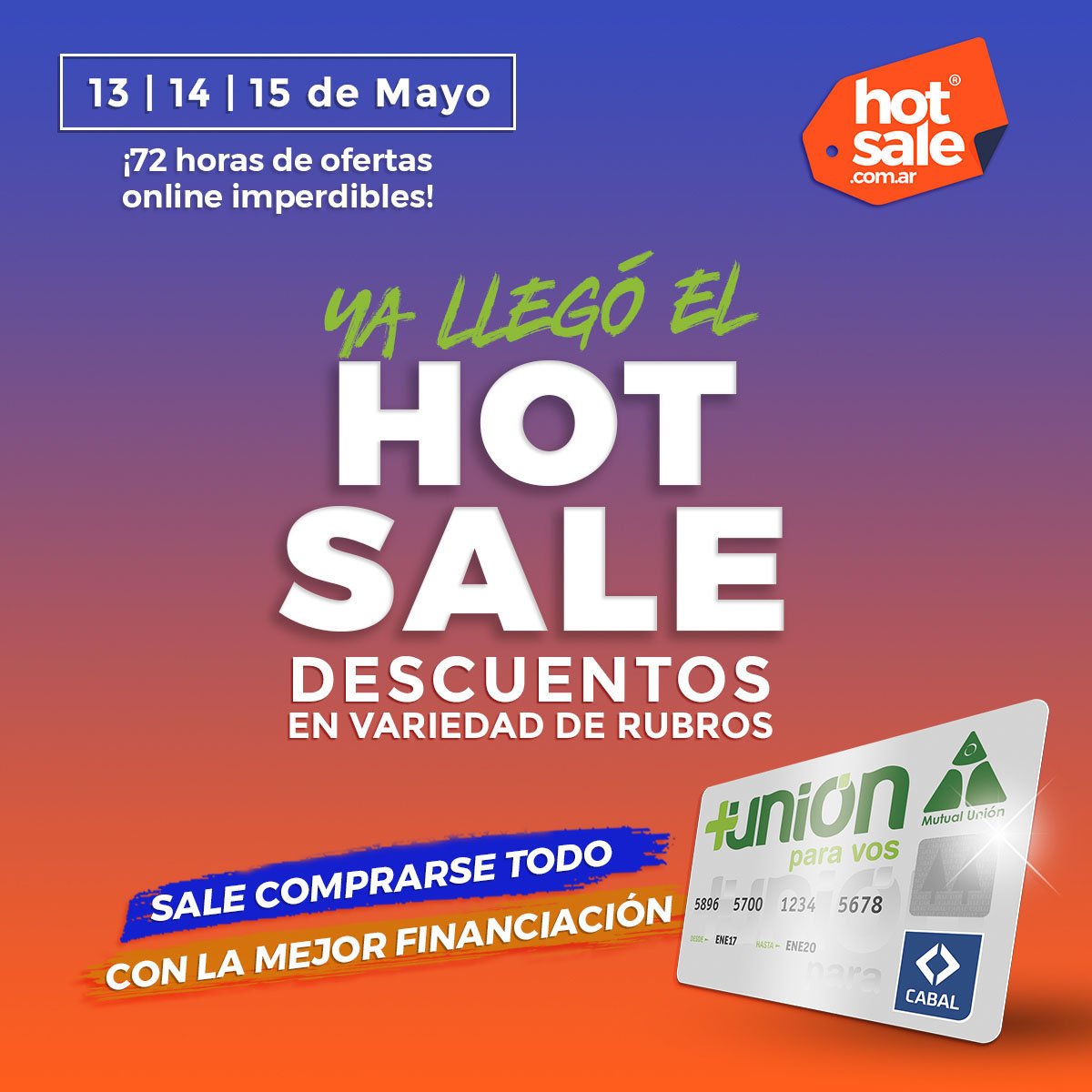 Como siempre la mejor financiación y la manera más confiable de comprar, la brinda tarjeta «+Unión» y en el Hot Sale permite adquirir productos deseados al mejor precio online.