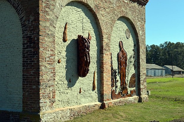 En la obra de Cofano, realizada en madera, el agua y la mano del hombre que la sostiene, son los elementos fundamentales, mientras que Carnero utilizó metal -incluidos varios insumos que fuerona parte del propio ferrocarril- para reflejar al hombre, el futuro y varios elementos más que componen su aporte.