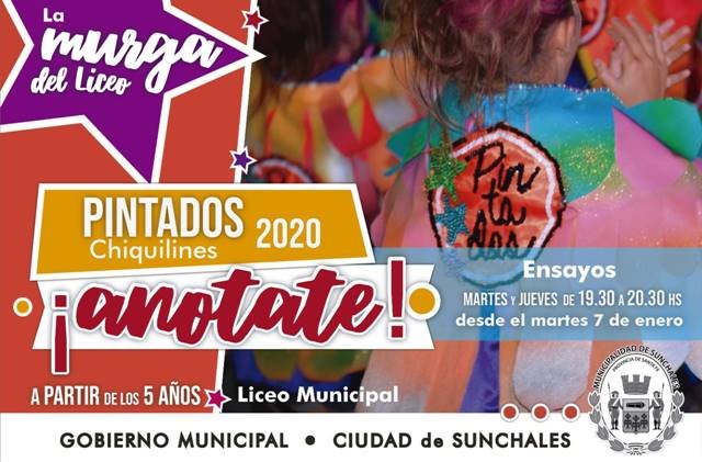 Desde el Municipio informaron que ya se encuentran abiertas las inscripciones para participar en la edición 2020 de la murga del Liceo Municipal «Pintados Chiquilines».
