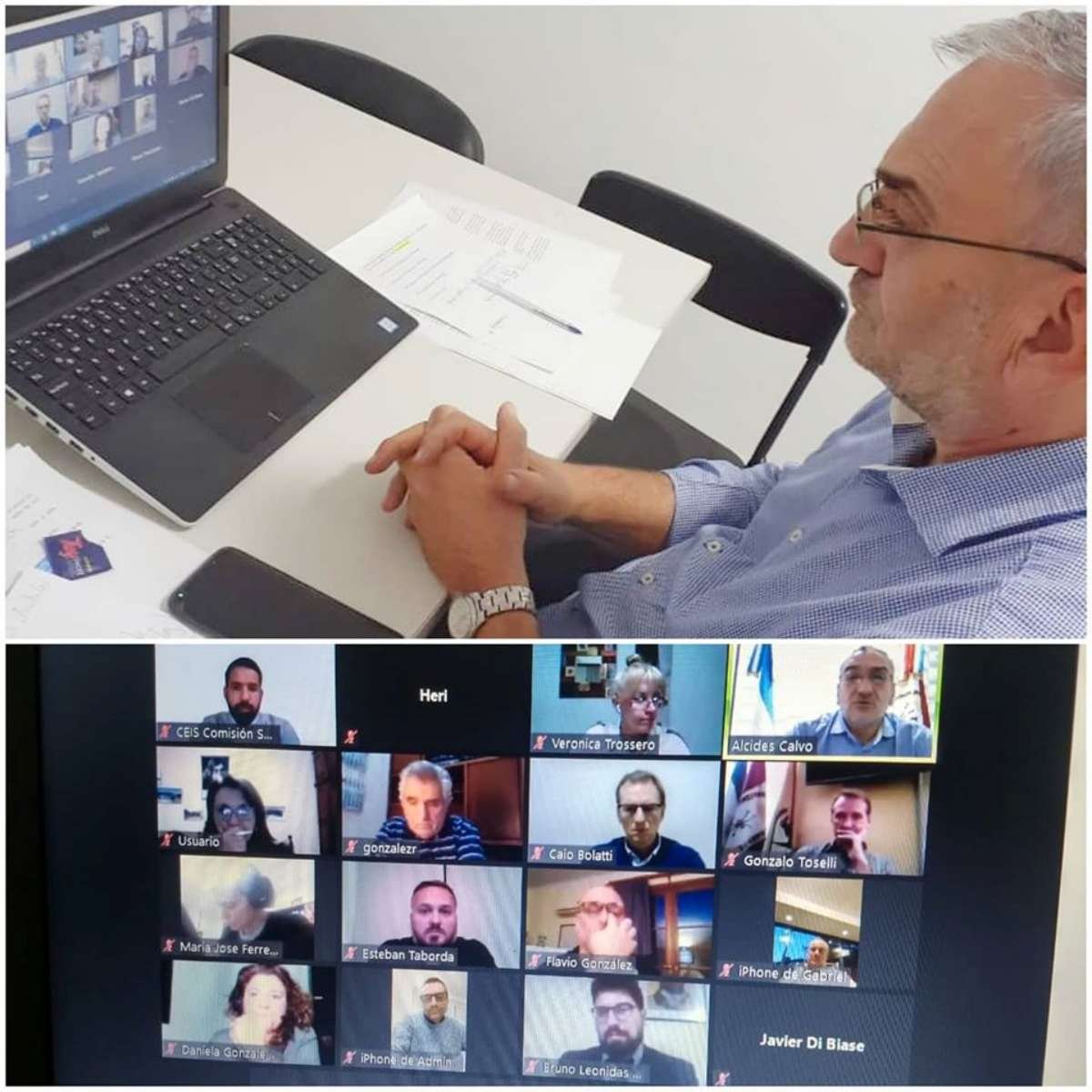 El senador Alcides Calvo, junto al intendente de Sunchales Gonzalo Tosseli y Bruno Rossini en representación del Ministerio de Seguridad de la Provincia de Santa Fe, mantuvieron una reunión virtual con industriales sunchalenses, representados por el Presidente de la Comisión de Empresarios Industriales, Lucas Musso y Rubén González, entre otros empresarios. Además, se sumaron por parte de la Agencia de Desarrollo Económico de Sunchales Javier Di Biase y la coordinadora Daniela González, junto a los concejales María José Ferrero, Oscar Trinchieri, Horacio Bertoglio, Alejandra Bugnon y Leandro Lamberti.