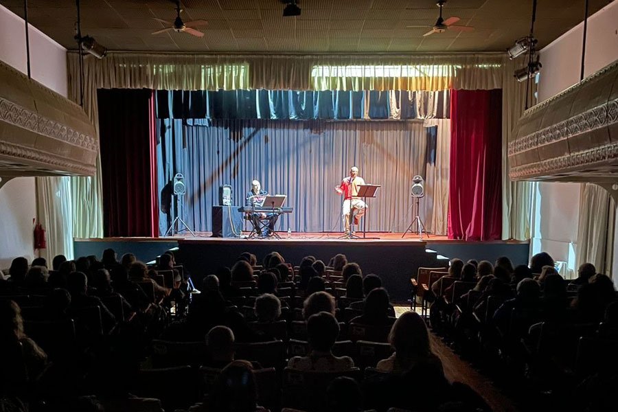 Pablo había pensado para cada cuento que Iván leyera, la canción adecuada al tema, y la cantó acompañada de un piano eléctrico. La impronta era provocante y el público intentaba anticipar lo que ejecutaría Pablo, luego de la lectura de Iván.