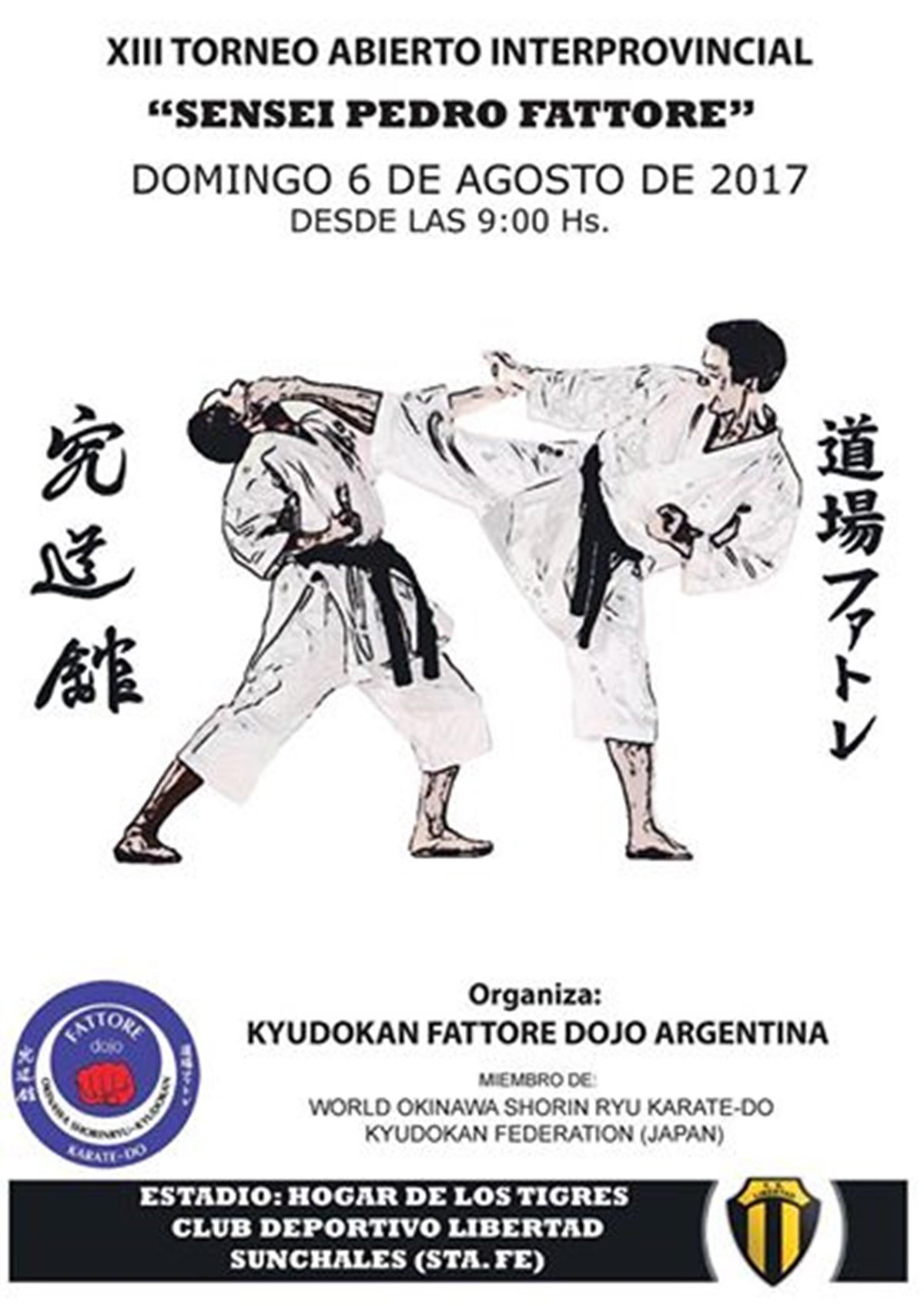 Como cada año, el Karate Do del club Libertad organiza su Abierto Interprovincial de la disciplina. El domingo 6 de agosto se desarrollará la XIII edición, con la coordinación del Director de la Escuela Kyudokan – Fattore Dojo, Sensei Marcelo Sobrero 7° Dan y del Instructor Maximiliano Monay 2° Dan.