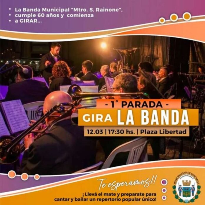 En el marco de su 60° aniversario, la Banda Municipal de Música «Sebastián Rainone» recorrerá diferentes puntos de la ciudad en los cuales ofrecerá parte de su repertorio.