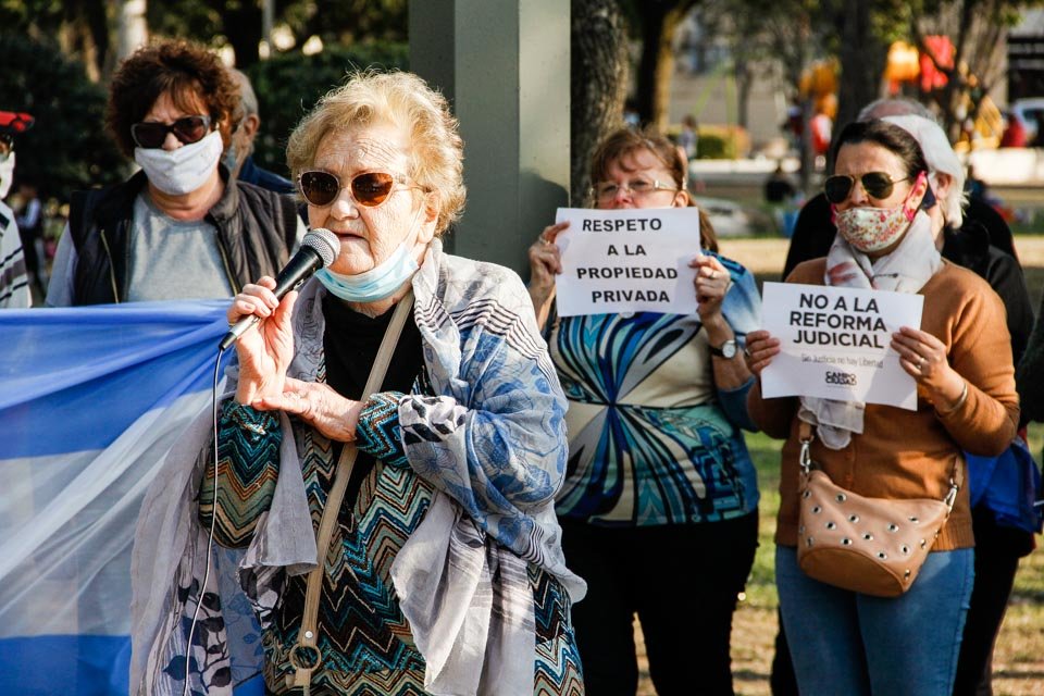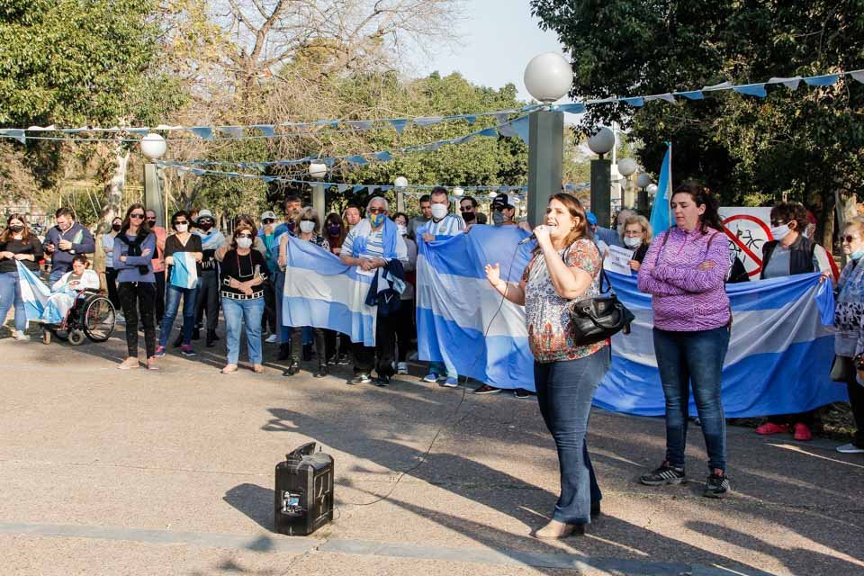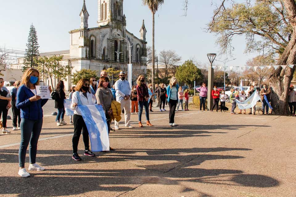 Con los recaudos del caso, por ejemplo la utilización de barbijos, los presentes compartieron un momento para trasladar distintos mensajes centrados en reclamos al Gobierno Nacional acerca de la extensión de la cuarentena y el aislamiento por una parte y de resistencia a la reforma del Poder Judicial por otra.