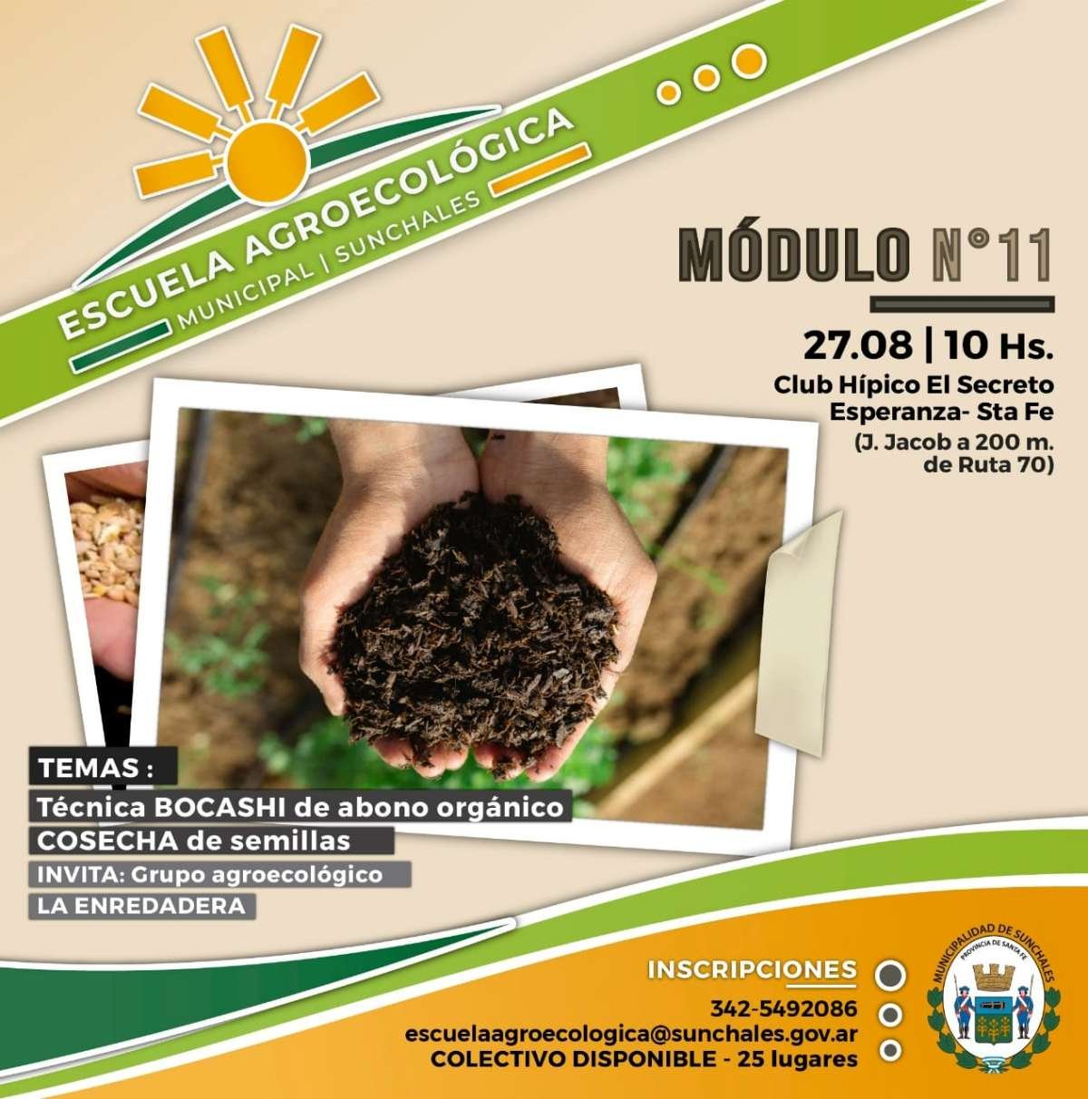 El nuevo Módulo (número 11) de la escuela Municipal de Agroecología de Sunchales, no se desarrollará en nuestra ciudad sino que el mismo, previsto para este sábado, tendrá lugar en el club Hípico «El Secreto» de Esperanza.