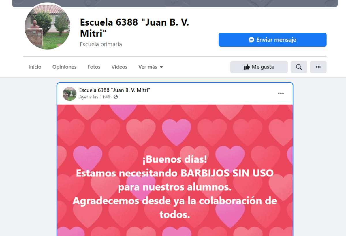 El establecimiento educativo publicó en el día de ayer en su perfil de Facebook un pedido puntual para recibir barbijos sin usar, los cuales serán destinados a sus alumnos para poder cumplir con las medidas preventivas que dicta el protocolo.
