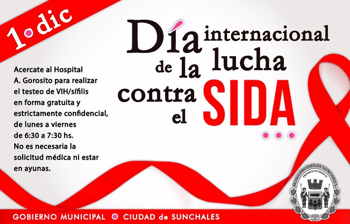 Desde la Municipalidad de Sunchales se adhiere al Día Mundial del Sida, por comprender la importancia de concientizar sobre esta problemática, y de promover un diagnóstico precoz para iniciar el tratamiento en forma oportuna.