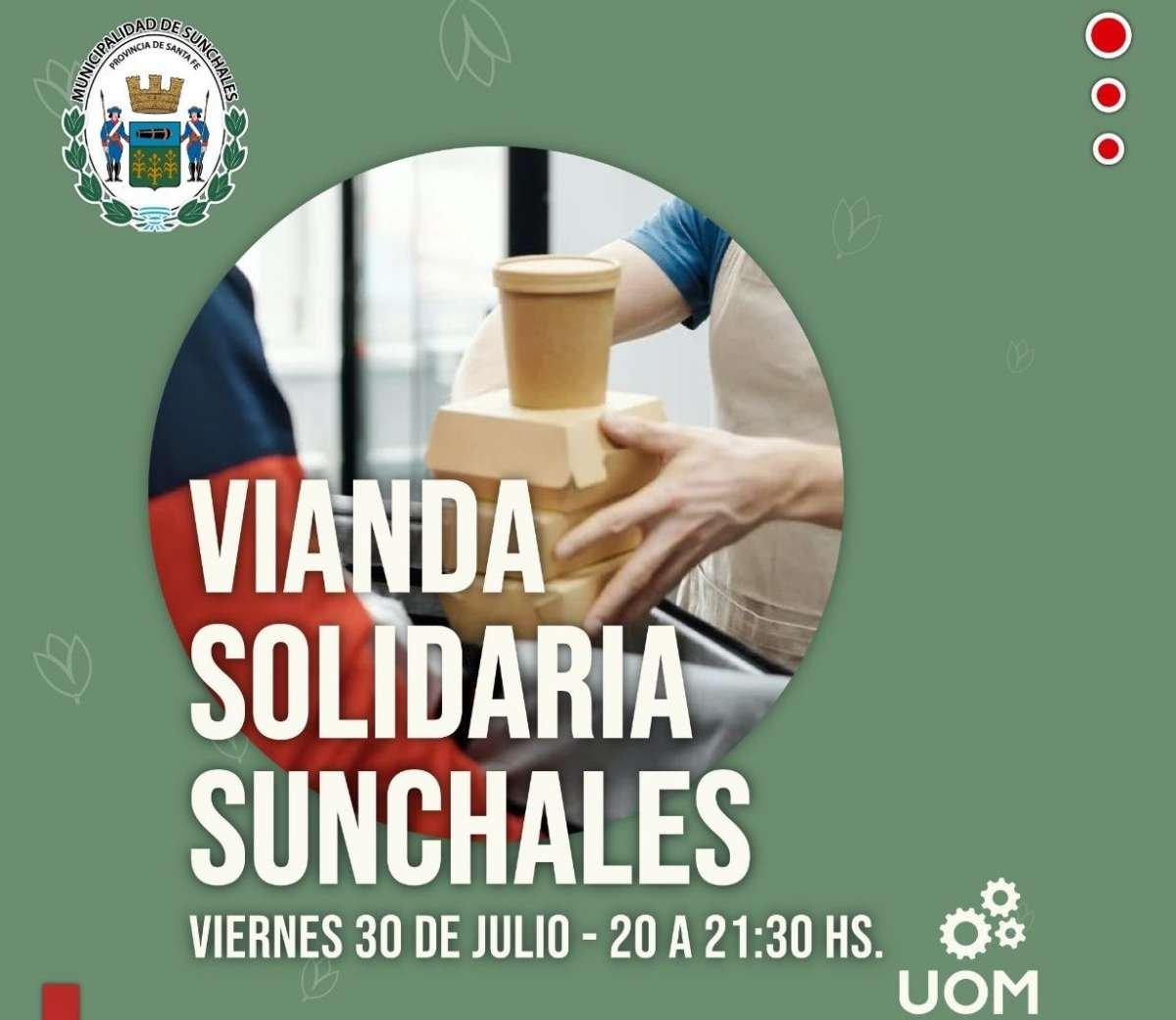 Desde la Unión Obrera Metalúrgica anticiparon que en la noche de hoy realizarán una nueva entrega de sus «Viandas Solidarias». La iniciativa, se concretará entre las 20 y 21.30, utilizando las instalaciones de «Casa Club», en el club Atlético Unión.