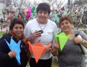 El acompañamiento en esta oportunidad no estuvo circunscrito a las «plegadoras» como ella les llama a mujeres y hombres que van elaborando las grullas de papel sino que se sumaron grupos de trabajo pertenecientes a la escuela Mitri, el colegio San José y también del Barrio SanCor. Hasta el Intendente Gonzalo Toselli dijo presente como un vecino más, participando junto a miembros de su Gabinete quienes también respondieron a la convocatoria.