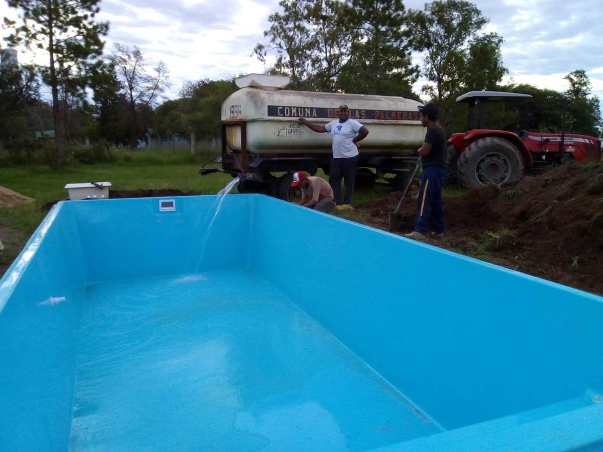 A través del proyecto «Derecho de Acceso al Agua y Aprender a Nadar», dependiente del Ministerio de Desarrollo Social de la Provincia de Santa Fe, la Comuna de Las Palmeras adquirió la compra e instalación de una pileta de natación para los vecinos de la localidad.