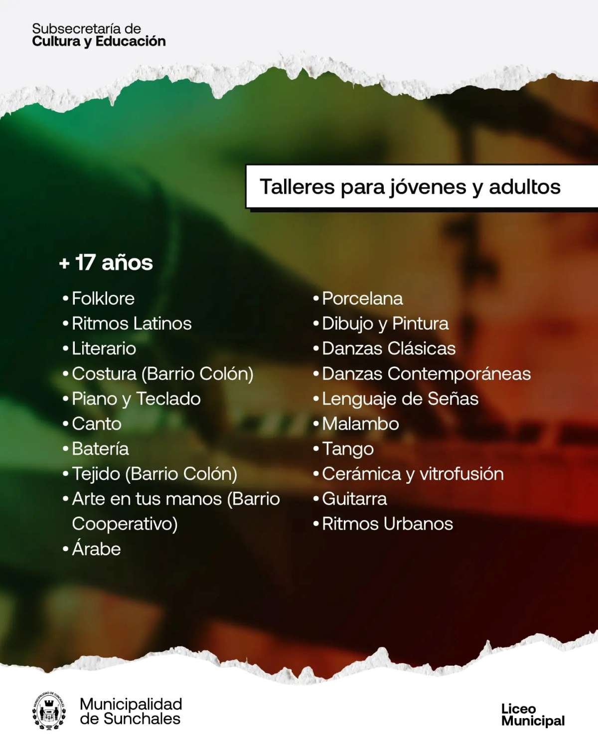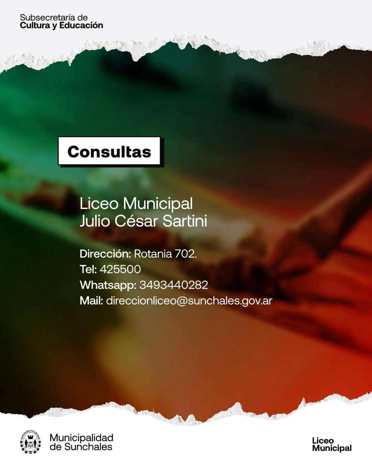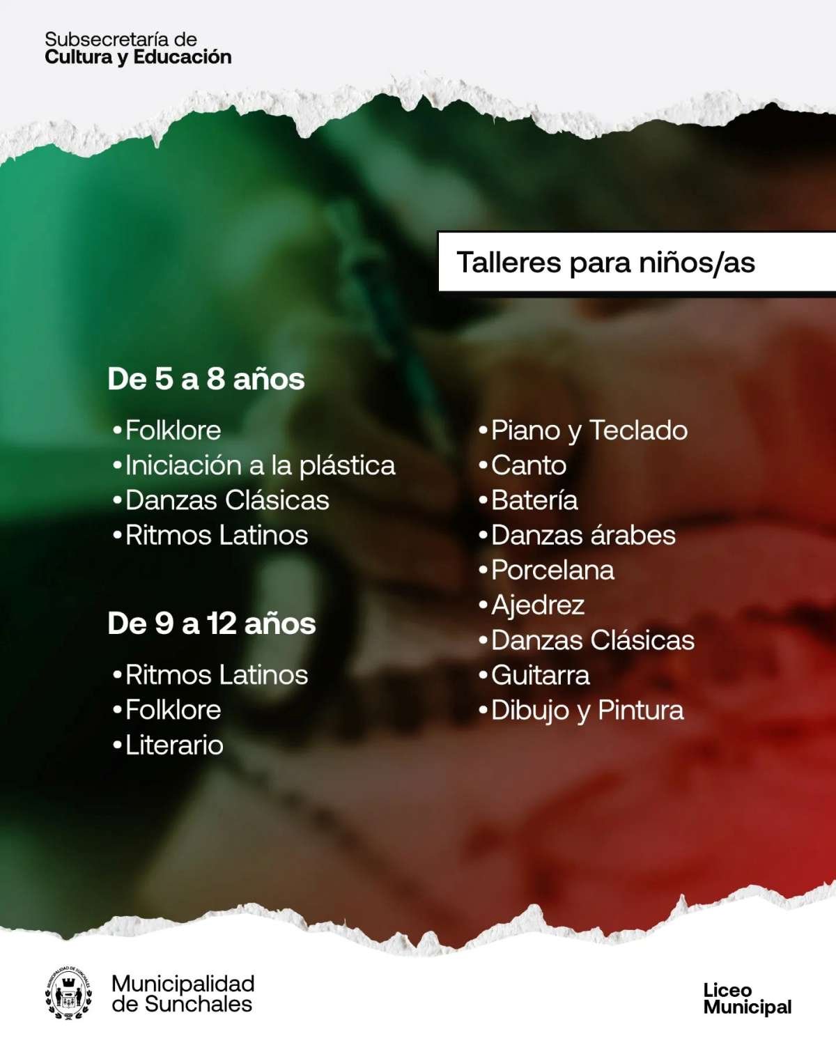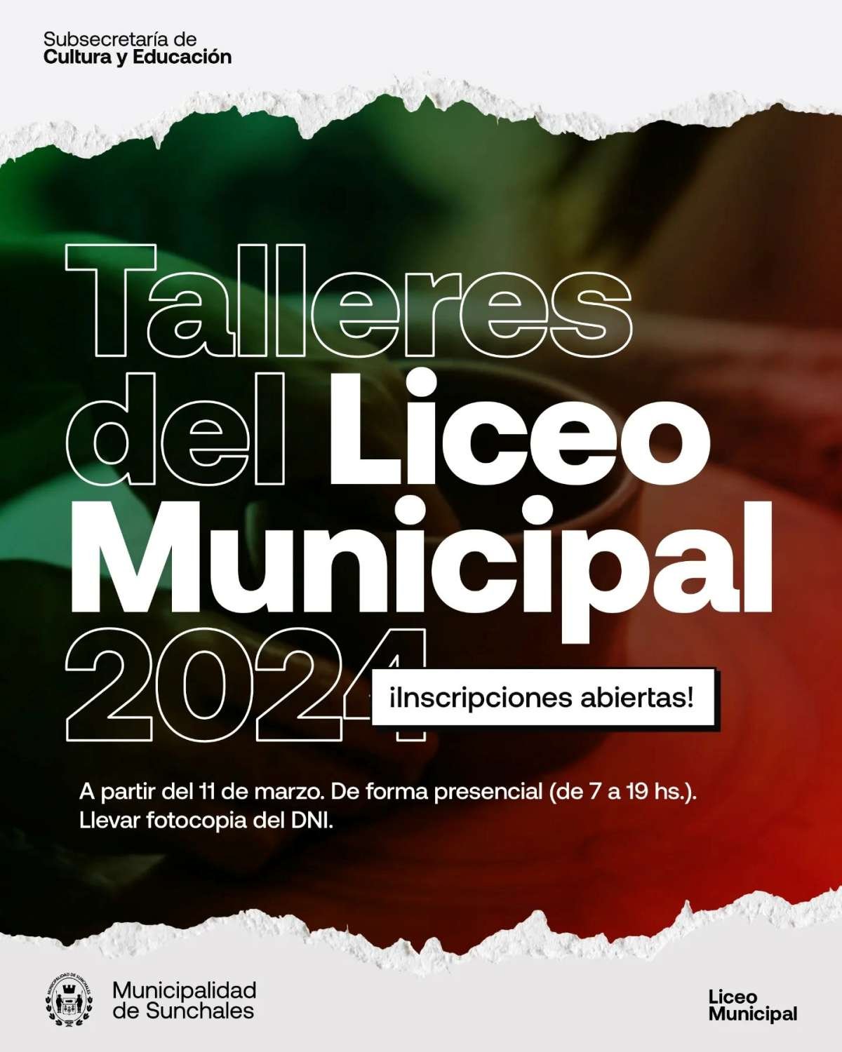 Por otra parte, se informó que a partir del lunes 11 de marzo, de 7 a 19 horas, se pueden efectuar las inscripciones a los diferentes Talleres del Liceo Municipal.
