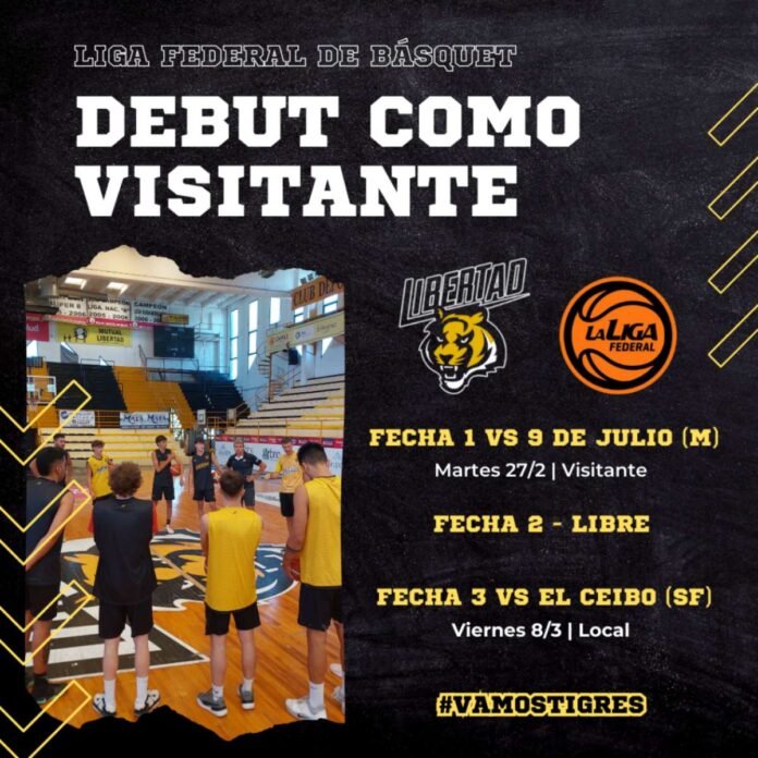 (Por: Prensa Libertad) – Este viernes se dio a conocer el fixture de la próxima Liga Federal de Básquet 2024. Los Tigres, que integran el Grupo A de la Conferencia Centro/Oeste, debutarán el martes 27 de febrero en Morteros ante 9 de Julio. El estreno en casa será el viernes 8 de marzo.