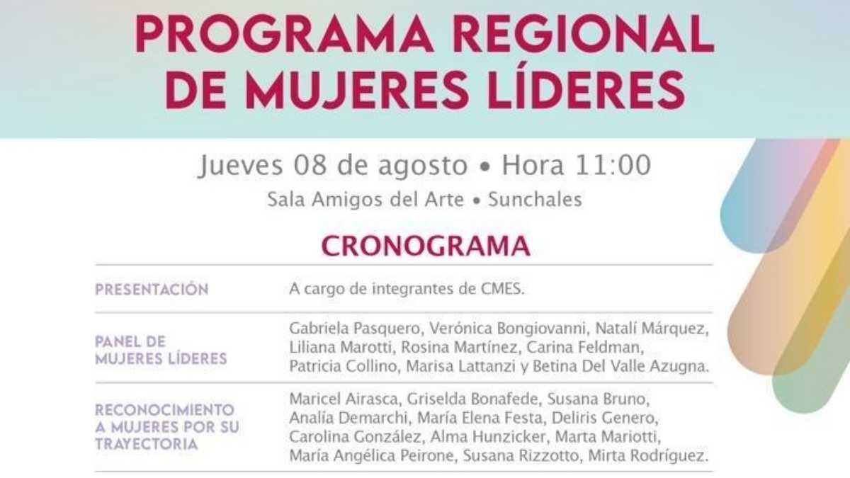 Bajo la coordinación local de la Cámara de Mujeres Empresarias, este jueves nuestra ciudad será sede de un nuevo encuentro del Programa Regional de Mujeres Líderes. La propuesta se repetirá en la región, con un formato similar, el cual incluye disertaciones, reconocimientos a mujeres empresarias y referentes de distintos ámbitos (empresarial, comercio, servicios y cultura, entre otras) y también recorridas por empresas de la ciudad.