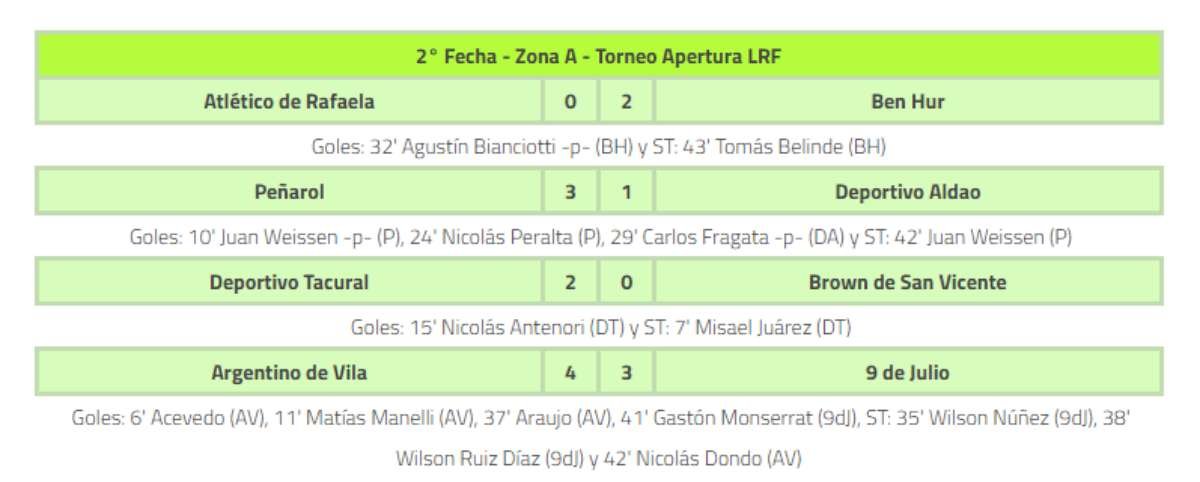 Vale recordar que ya habían adelantado, Argentino de Vila que le ganó 4-3 a 9 de Julio.