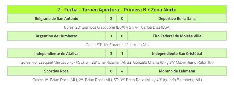 Por la Zona B, ya habían adelantado en la semana Unión de Sunchales que venció 1-0 a Quilmes con gol de Augusto Magoia. Mientras que este domingo, Sportivo Norte derrotó 1-0 a Libertad de Sunchales, con gol de Joaquín Cabral.